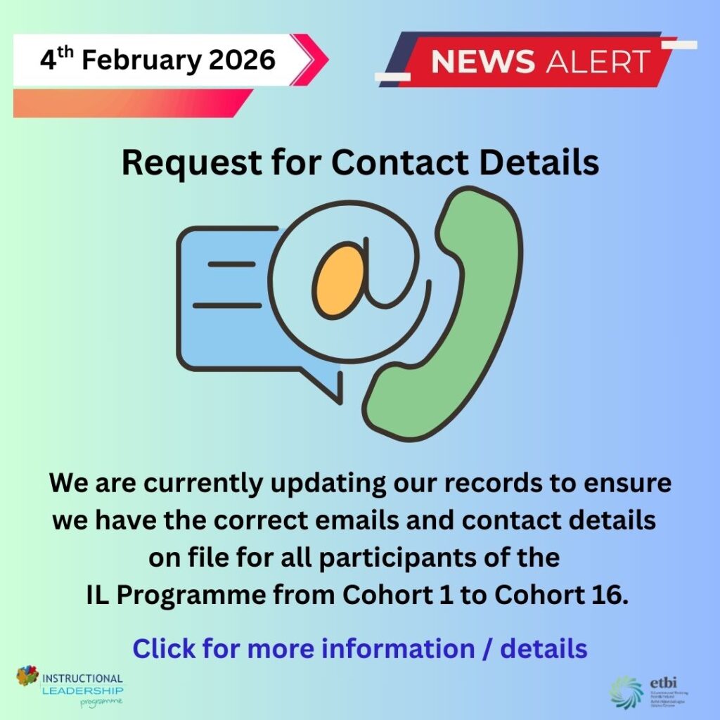 Request for Contact Details February 4, 2026 Read More ETBI Annual Principals and Deputy Principals Conference January 30, 2026 Read More IL Christmas Wishes 2025 December 17, 2025 Read More New Look Website November 7, 2025 Read More Peer Instructional Conferencing & Coaching Programme October 8, 2025 Read More The Teaching Council – Féilte Busary Scheme 2025 September 19, 2025 Read More 1 2 3 4 5 6 7 8 9 Next »